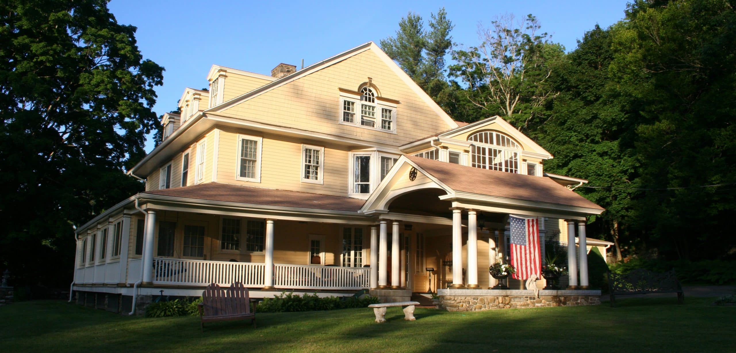 The Manor House Inn, a Queen Anne-style mansion built in the heyday of the Gilded Age, is now an elegant bed and breakfast on a shady street in the middle of town.